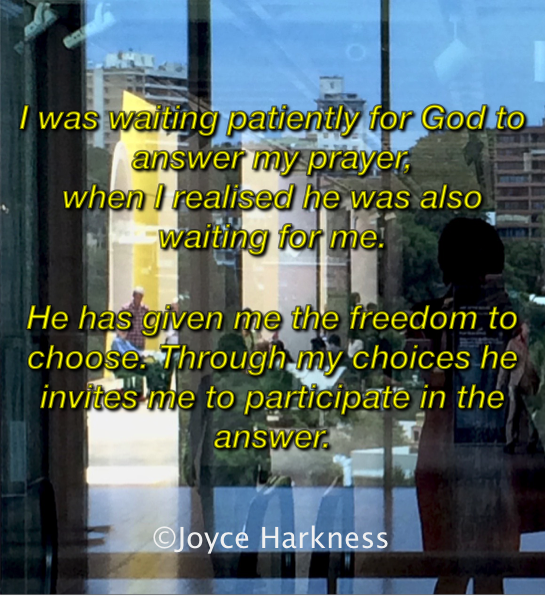 God has given me the freedom to choose.Through my choices, He invites me to participate in the answer.